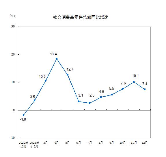 國家統(tǒng)計(jì)局:2023年12月份社會消費(fèi)品零售總額增長7.4%