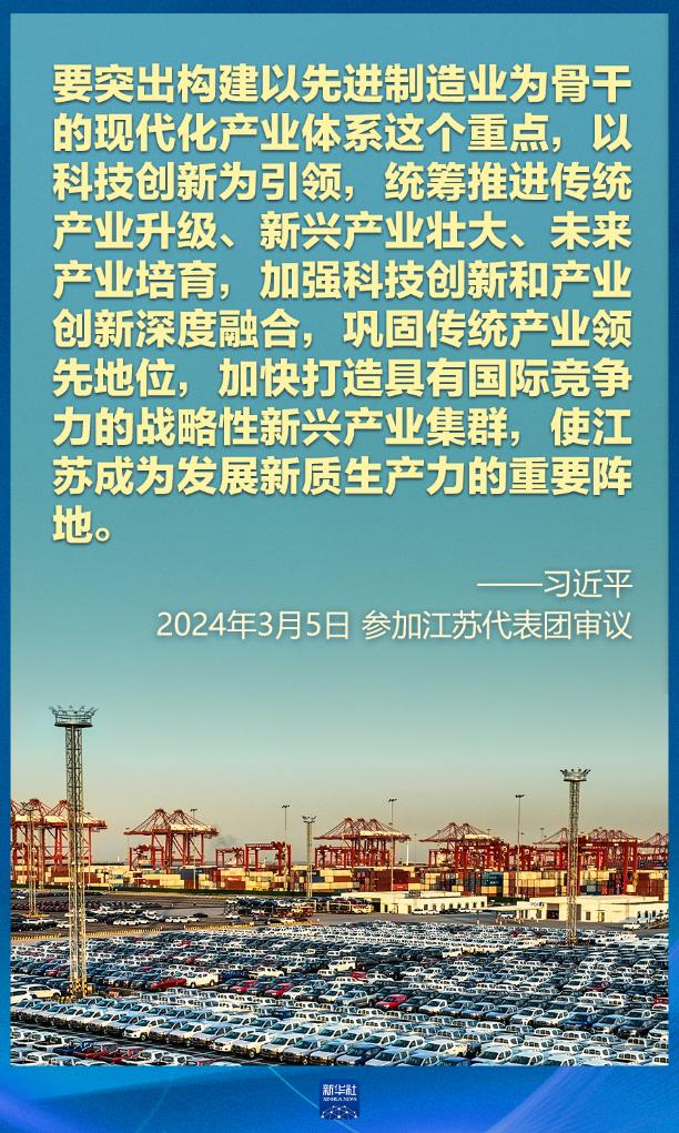 5日下午,習近平在參加他所在的十四屆全國人大二次會議江蘇代表團審議時強調,因地制宜發(fā)展新質生產力。
