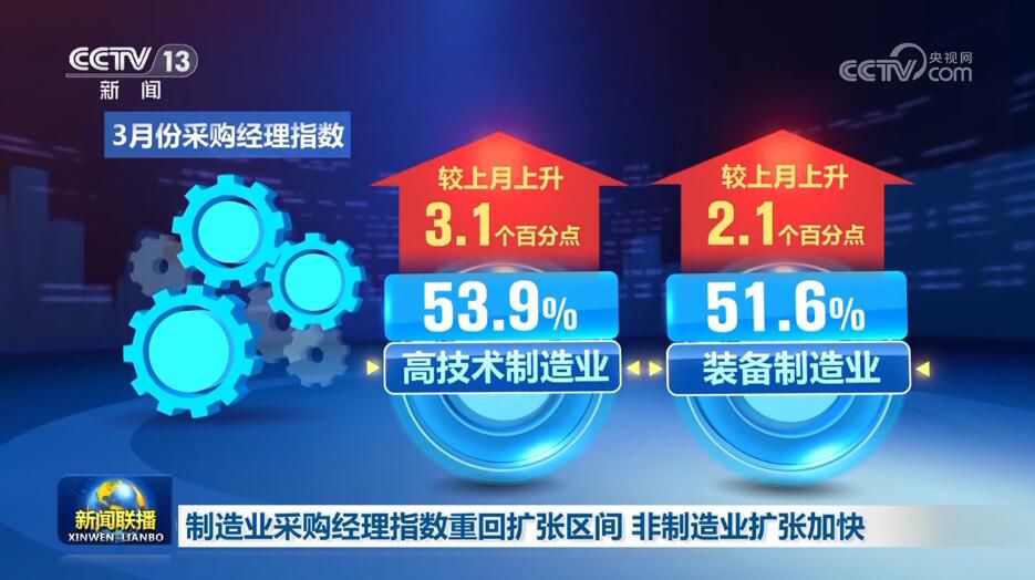 中國(guó)物流與采購聯(lián)合會(huì)、國(guó)家統(tǒng)計(jì)局服務(wù)業(yè)調(diào)查中心今天(3月31日)公布3月份中國(guó)采購經(jīng)理指數(shù)。制造業(yè)采購經(jīng)理指數(shù)重回?cái)U(kuò)張區(qū)間,景氣水平明顯提升,非制造業(yè)繼續(xù)加快擴(kuò)張。