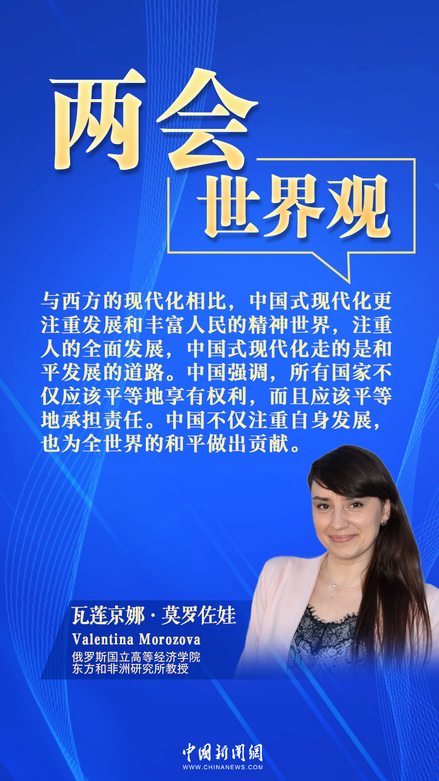 在談到中國式現代化時,莫羅佐娃注意到,中國強調所有國家不僅應該平等地享有權利,而且應該平等地承擔責任。中國不僅注重自身發(fā)展,也為全世界的和平做出貢獻。(制圖:姚嵐)(完)