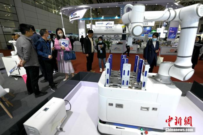 資料圖:3月9日,2023中國(福州)工業(yè)博覽會在福州海峽國際會展中心舉辦,各種機器人自動化設備吸人眼球。