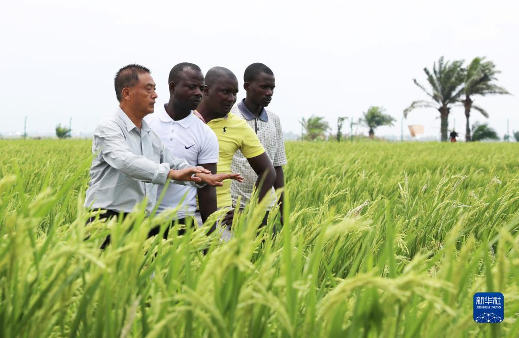 2022年10月29日,在布隆迪布班扎省基航加縣,中國水稻專家但松柏(左一)指導(dǎo)當(dāng)?shù)剞r(nóng)民種植水稻。新華社記者 董江輝 攝