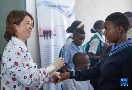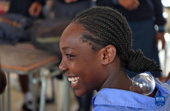 4月3日,在納米比亞溫得和克的伊曼紐爾·謝菲迪中學課堂上,一名學生體驗艾灸。新華社發(fā)(穆薩·卡薩克攝)