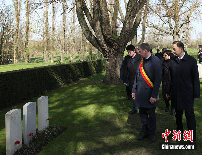 中新社比利時波普林格4月5日電 (記者 德永健)4月5日清明節(jié),中國和比利時官員來到曾經(jīng)的一戰(zhàn)主戰(zhàn)場比利時波普林格市,祭掃長眠在此的一戰(zhàn)華工。