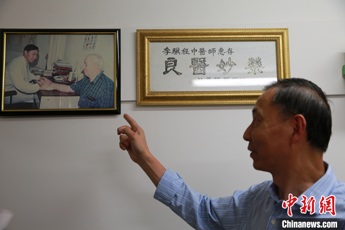 診所墻上一張彩色相片引起筆者好奇心。照片里,李醫(yī)生在給一個頭發(fā)花白的外國人號脈診斷。