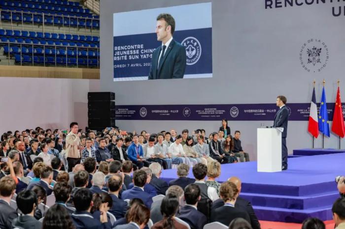 馬克龍在演講中說,希望青年人能夠共同應對當今世界包括氣候變化、生物多樣性、科技等方面的挑戰(zhàn)?!爱斀窠洕鲩L的挑戰(zhàn)尤其是脫碳增長的挑戰(zhàn)非常大,對于青年學子來說通過研究、創(chuàng)新應對挑戰(zhàn)非常重要。”他提到,中山大學中法核工程與技術學院為此開展了大量的相關工作。