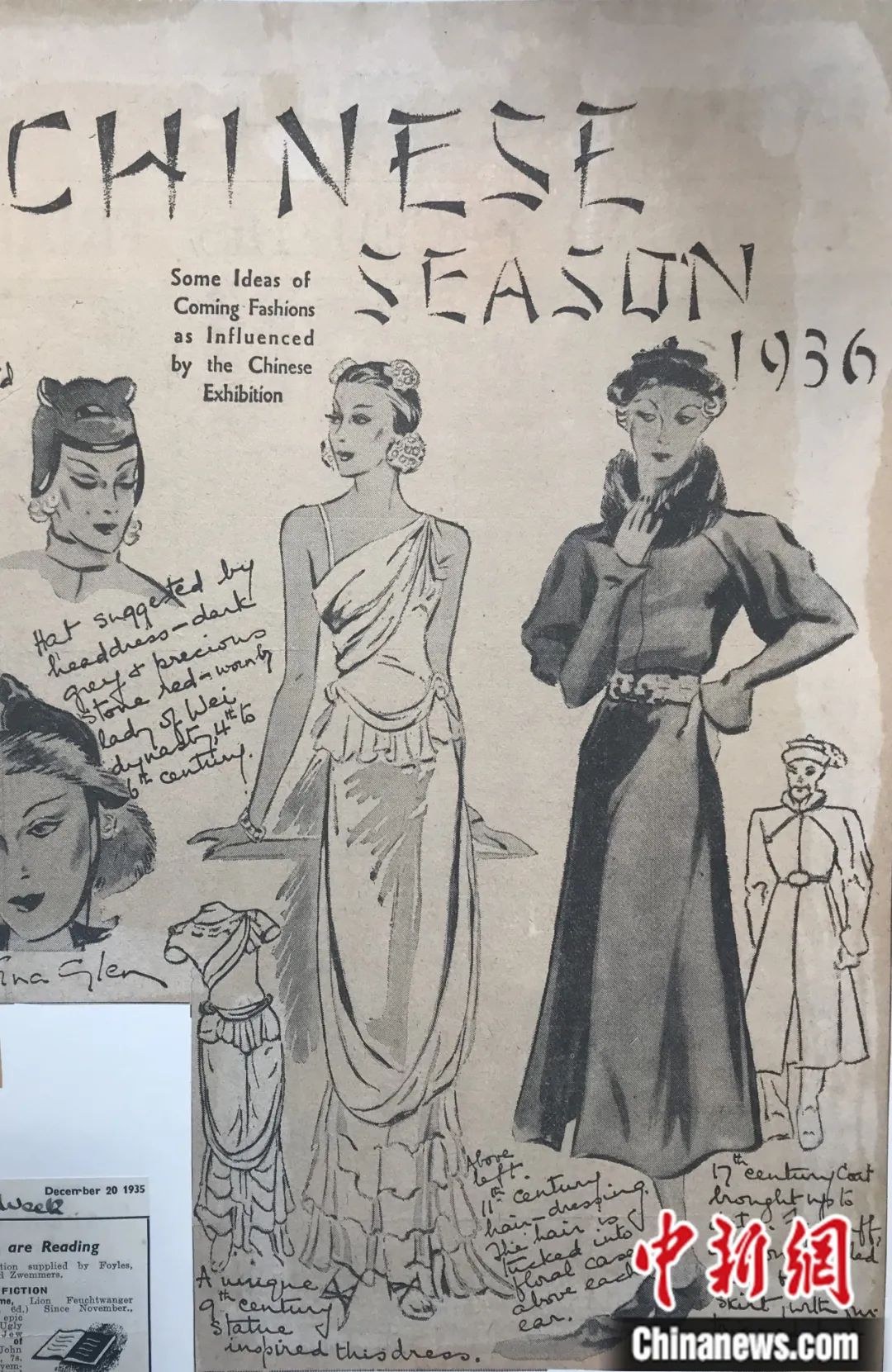 展覽開幕前,Vogue雜志于1935年10月30日用一整版的篇幅,梳理預(yù)測了中國佛像的衣紋裝飾以及陶瓷的花紋色彩,即將對時尚帶來的一些影響。倫敦藝展開幕后,歐洲時尚設(shè)計師陸續(xù)趕赴伯靈頓宮參觀展覽,希望從中找尋時尚設(shè)計的靈感。一條春季時尚長裙的設(shè)計靈感,來源于展覽中的一座唐代漢白玉菩薩立姿像。佛像婀娜娉婷的身姿、華美精致的瓔珞以及輕薄柔軟的長裙,深深吸引著設(shè)計師的目光。