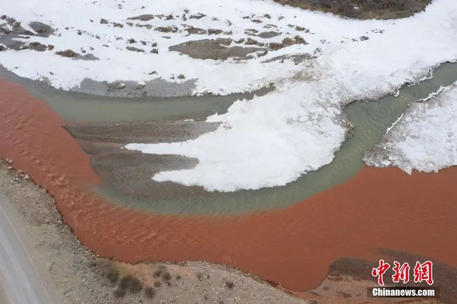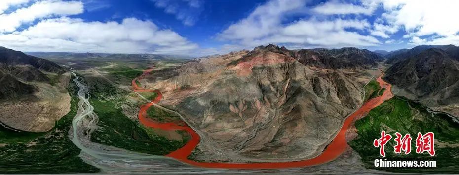 阿拉克湖多條支流奔流不息地拍打著紅色河床,猶如碧玉寶鏡舞動(dòng)著紅色絲帶。柴迪成 攝