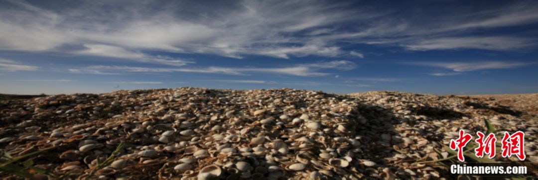 貝殼同含有鹽堿的泥沙凝結(jié)在一起,層層疊疊,千姿百態(tài),是迄今為止中國(guó)內(nèi)陸盆地發(fā)現(xiàn)的最大規(guī)模的古生物地層。
