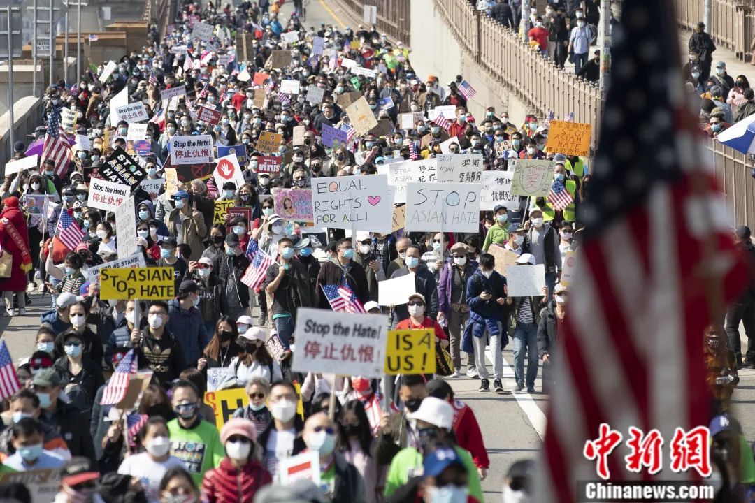 2021年,美國(guó)亞裔民眾受到種族歧視侵害事件頻發(fā),針對(duì)亞裔的仇恨犯罪備受社會(huì)關(guān)注。圖為2021年4月,紐約舉行反仇恨亞裔大游行。廖攀 攝