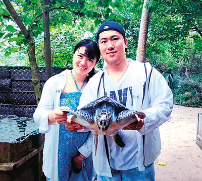 2018年,許振軒與李丹宜正在江蘇南京讀大學(xué)。一次偶然的機(jī)會(huì),兩人到斯里蘭卡體驗(yàn)了一場(chǎng)特殊的“海龜保育義工之旅”。許振軒一直非常喜歡去海洋館,宿舍還有好幾個(gè)烏龜?shù)??!翱粗鼈儚姆趸铰砷L(zhǎng),感覺非常奇妙。剛好一直關(guān)注的公眾號(hào)提供了研學(xué)機(jī)會(huì),我從眾多項(xiàng)目里選擇了‘海龜保育’?!痹S振軒的決定也影響了喜愛小動(dòng)物的女朋友李丹宜。