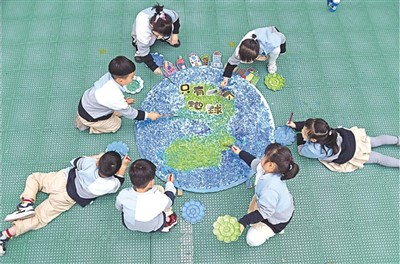 日前,浙江省臺(tái)州市仙居縣實(shí)驗(yàn)幼兒園舉行“世界地球日”主題教育活動(dòng),通過(guò)手繪地球等環(huán)節(jié)引導(dǎo)孩子們從小樹立愛護(hù)地球、人與自然和諧共生的理念。圖為孩子們?cè)凇笆掷L地球”。