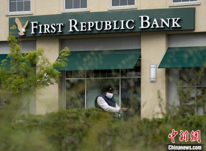當(dāng)?shù)貢r間5月1日,一名男子走出位于美國加州米爾布雷市的一家第一共和銀行。 中新社記者 劉關(guān)關(guān) 攝