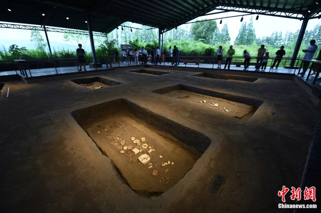觀眾參觀反山遺址14號墓葬復(fù)原場景。李忠 攝