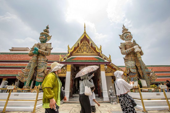 5月1日,游客在泰國(guó)曼谷大王宮景區(qū)游覽。新華社記者王騰攝