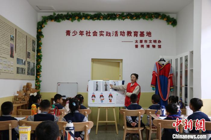 5月2日,山西太原,晉祠博物館面向青少年開展Q版宋塑侍女涂色活動。 鐘欣 攝