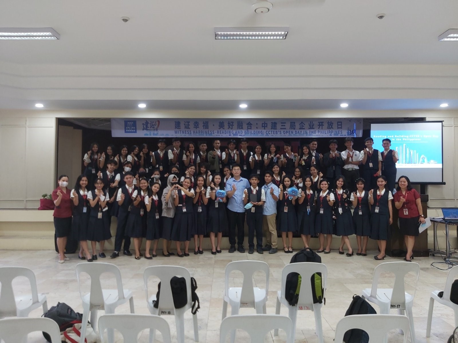人民網(wǎng)訊 5月4日,中國(guó)建筑第三工程局有限公司(中建三局)走進(jìn)菲律賓新布萊頓學(xué)校,舉辦文化開放日閱讀分享會(huì)。中建三局青年員工,菲律賓新布萊頓學(xué)校高二、高三學(xué)生,校方代表等60余人參加活動(dòng),交流閱讀體驗(yàn)。