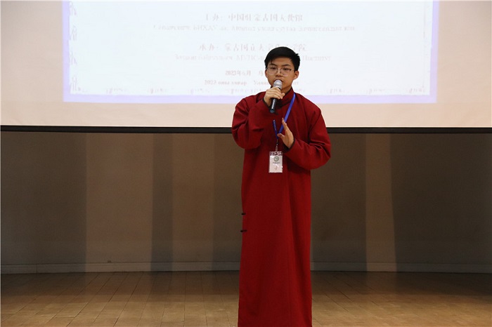 普通話(huà)中學(xué)的選手恩赫巴亞爾榮獲一等獎(jiǎng)。蒙古國(guó)立大學(xué)孔子學(xué)院供圖