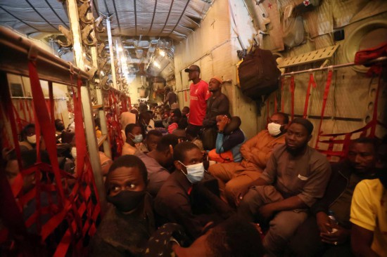 5月4日,從蘇丹撤離的尼日利亞公民即將抵達阿布賈。新華社發(fā)(阿德拉昆攝)