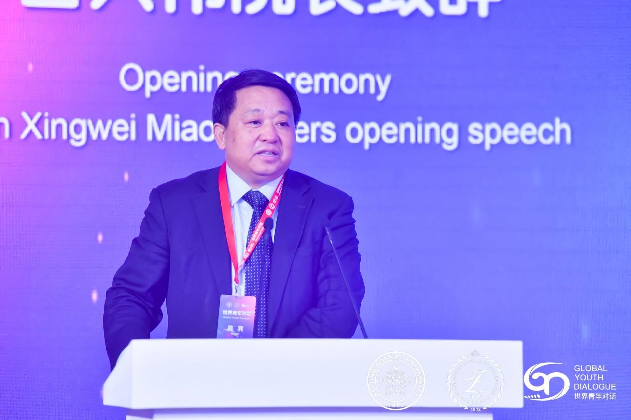 北京師范大學(xué)外國語言文學(xué)學(xué)院院長苗興偉在開幕式上致辭。他表示,希望通過“世界青年對話”活動建立全球青年的定期交流平臺,跨代攜手,共同推進(jìn)建設(shè)更加公平、公正、包容的世界。