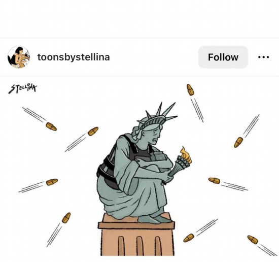 面對已經(jīng)成為“日?!钡臉寭舭福M饩W(wǎng)友創(chuàng)作了大量時事漫畫,諷刺美國政府面對槍支暴力冷漠麻木,任由民眾不斷倒在槍口之下。盡管漫畫一幅比一幅犀利,但有美國網(wǎng)友直言:再犀利的漫畫也無法觸動美國政客,讓他們改變現(xiàn)狀。