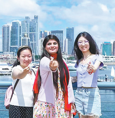 娜菲薩·穆潔(中)在山東青島參觀。