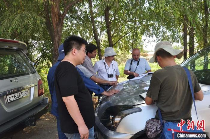 2016年在塔吉克斯坦,中塔雙方考古學(xué)家在調(diào)查現(xiàn)場討論。王建新 供圖
