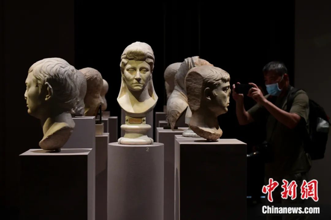 2022年7月12日,參觀者在位于北京的中國國家博物館參觀“意大利之源——古羅馬文明展”。田雨昊 攝