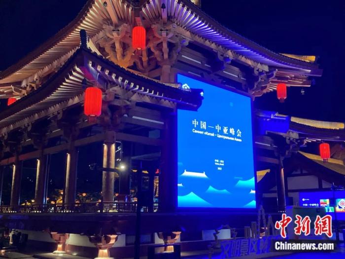 2023年5月11日,西安,曲江池遺址公園夜色闌珊。中國(guó)-中亞峰會(huì)宣傳牌點(diǎn)亮,峰會(huì)即將在西安召開(kāi)。李溪龍 攝