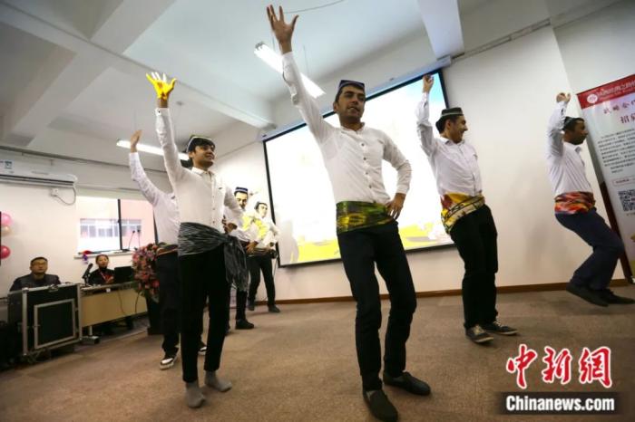 2016年,首屆“絲綢之路文化使者”特訓(xùn)營(yíng)在西安啟動(dòng)。圖為來(lái)自烏茲別克斯坦的留學(xué)生在啟動(dòng)儀式上表演舞蹈。張遠(yuǎn) 攝