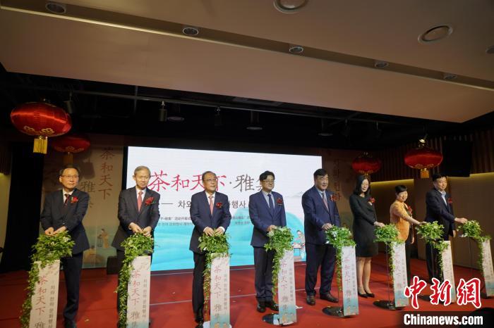 當(dāng)?shù)貢r(shí)間23日,“茶和天下·雅集”活動(dòng)開幕式暨茶韻山水——“綠水青山就是金山銀山”浙江省文旅圖片展在首爾中國文化中心舉行。圖為活動(dòng)啟幕儀式。中新社記者 劉旭 攝