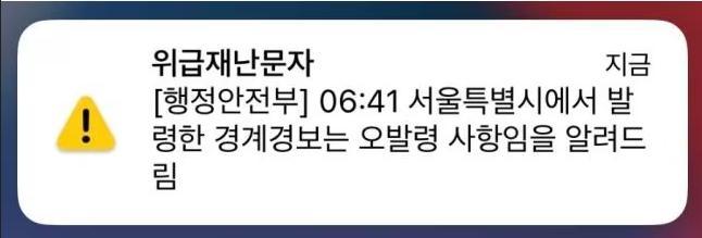 7時3分,首爾市民再次收到消息:“首爾特別市發(fā)布的警戒警報屬于誤發(fā)事項,特此通知?!?/p>