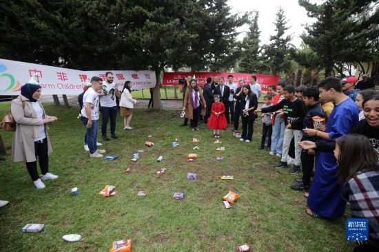 5月31日,在阿爾及爾達(dá)拉利亞SOS兒童村,中國駐阿爾及利亞大使館、中國援阿醫(yī)療隊(duì)聯(lián)合中國建筑股份有限公司阿爾及利亞公司舉辦兒童節(jié)活動(dòng)。新華社發(fā)