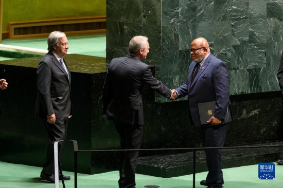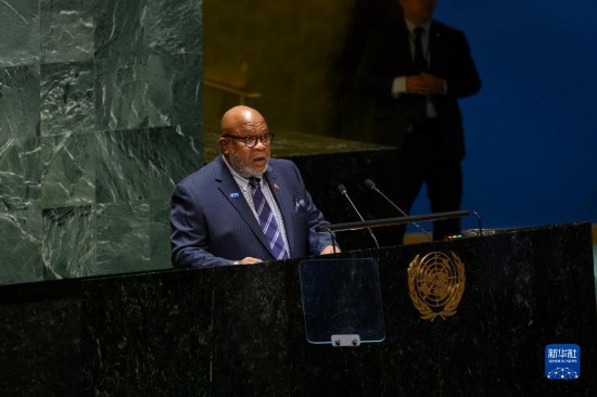 6月1日,在位于紐約的聯(lián)合國總部,特立尼達和多巴哥常駐聯(lián)合國代表丹尼斯·弗朗西斯(前)當(dāng)選第78屆聯(lián)合國大會主席后發(fā)表講話。新華社發(fā)(聯(lián)合國供圖/洛伊·費利普攝)