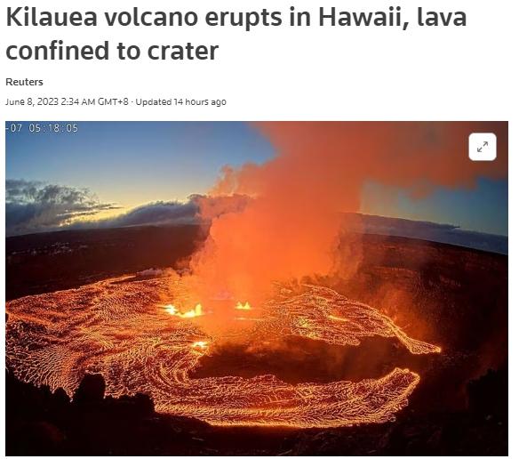 據(jù)路透社報(bào)道,美國地質(zhì)調(diào)查局 (USGS) 通報(bào)稱,當(dāng)天凌晨4時(shí)44分,“基拉韋厄火山噴發(fā)?!?/p>