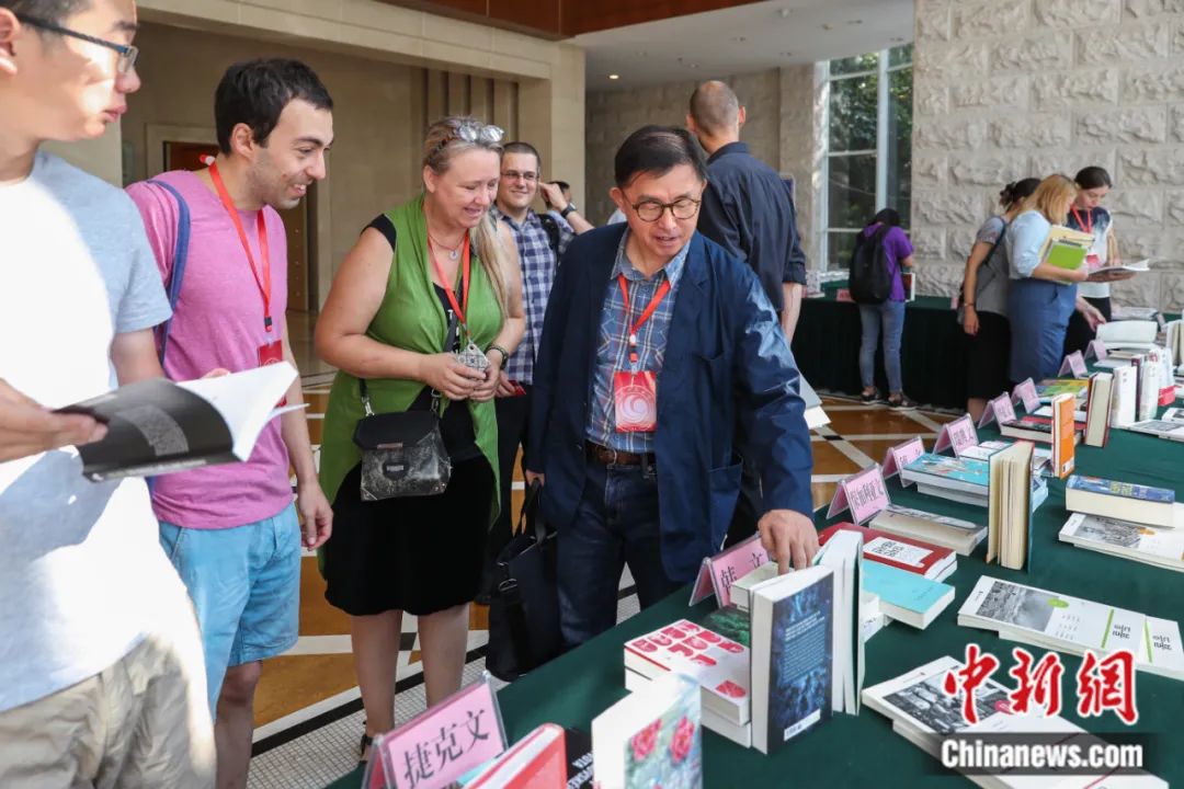 2018年,第五次漢學家文學翻譯國際研討會在貴陽舉行。圖為研討會上的翻譯作品展吸引海外翻譯家關(guān)注。賀俊怡 攝