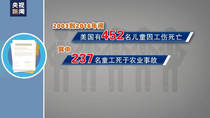 農(nóng)業(yè)領(lǐng)域是美國(guó)雇傭童工的重災(zāi)區(qū)之一。據(jù)美國(guó)非營(yíng)利組織“農(nóng)場(chǎng)工人就業(yè)項(xiàng)目聯(lián)合會(huì)”提供的數(shù)據(jù),美國(guó)仍有50萬(wàn)至80萬(wàn)名童工在農(nóng)場(chǎng)工作。農(nóng)場(chǎng)勞作繁重、條件艱苦,童工還常被置于因天氣、農(nóng)藥及使用農(nóng)具農(nóng)機(jī)所產(chǎn)生的危險(xiǎn)中?!度A盛頓郵報(bào)》報(bào)道,2003年至2016年間,美國(guó)有452名兒童因工傷死亡,其中237名童工死于農(nóng)業(yè)事故。