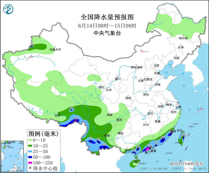 中新網6月14日電 據(jù)中央氣象臺網站消息,中央氣象臺預報,未來三天,我國整體的天氣形勢為北晴南雨,北方大部地區(qū)將陸續(xù)感受到炎炎夏日的威力,西安、鄭州、石家莊今明兩天最高氣溫將在37-39℃;南方降雨主要集中在華南沿海地區(qū),雨量普遍有大到暴雨。華南這種臨近端午節(jié)的大范圍強降雨又稱為龍舟水。氣象專家提醒,未來三天進入華南“龍舟水”集中期,需注意持續(xù)性強降雨可能引發(fā)的次生地質災害。