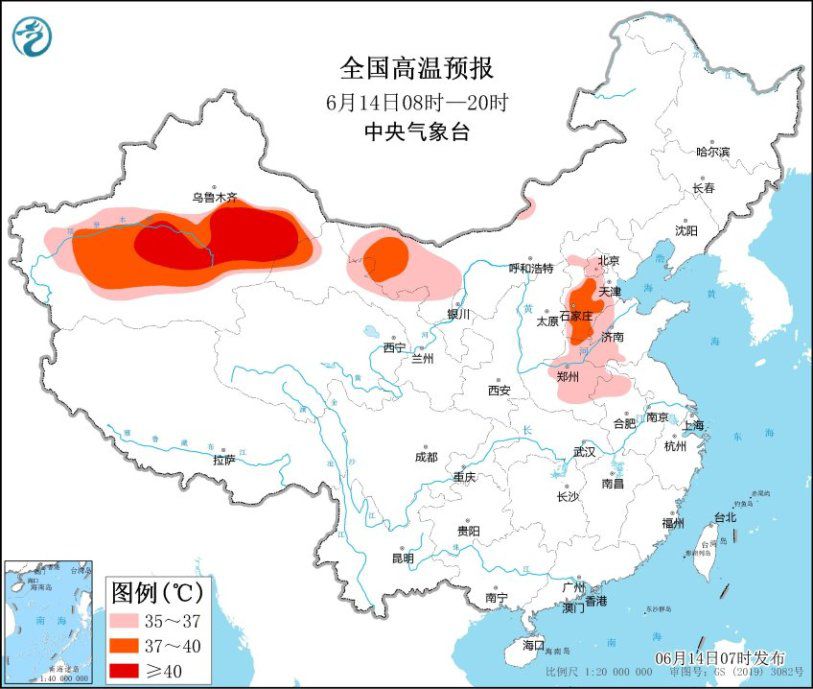 昨天,新疆中南部、內蒙古西部、廣東中部等地出現(xiàn)35℃以上高溫天氣,新疆吐魯番局地40~42.9℃。未來三天,華北東部、黃淮及新疆、甘肅西部、內蒙古西部等地部分地區(qū)有35~39℃的高溫天氣,新疆吐魯番等地最高氣溫將超過40℃。氣象專家提醒,北方地區(qū)暑氣大漲,天氣炎熱,老人、小孩或體質較弱人群應盡量避免午后高溫時段外出,同時注意避暑防曬,做好補水降溫的工作。