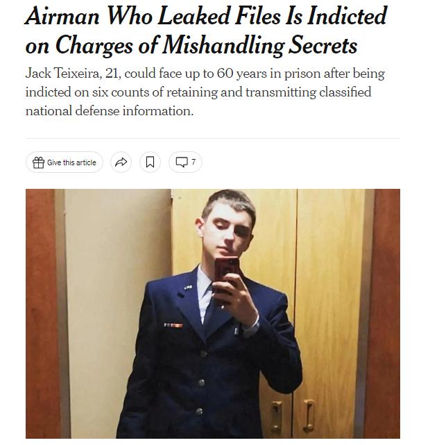 中新網(wǎng)6月16日電 綜合外媒報(bào)道,當(dāng)?shù)貢r(shí)間15日,美國聯(lián)邦大陪審團(tuán)起訴21歲的空軍國民警衛(wèi)隊(duì)成員杰克·特謝拉(Jack Teixeira),罪名是保留和傳播國防機(jī)密信息等。