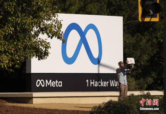 美國(guó)社交網(wǎng)絡(luò)巨頭Facebook公司(臉書)更名為Meta(元宇宙),位于美國(guó)加利福尼亞州門洛帕克的元宇宙公司總部的新標(biāo)識(shí)吸引市民拍照留念。劉關(guān)關(guān) 攝