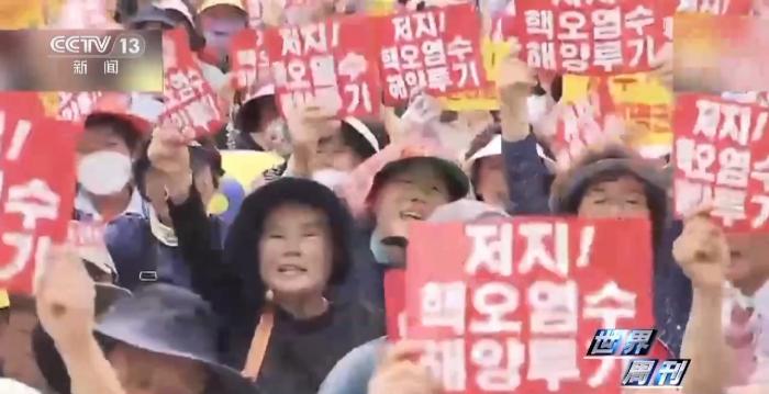 同一天,在日本駐濟州總領(lǐng)事館前,來自濟州自治道漁業(yè)和農(nóng)業(yè)團體約2000多人集會抗議,譴責(zé)日本將福島核電站核污染水排放入海。