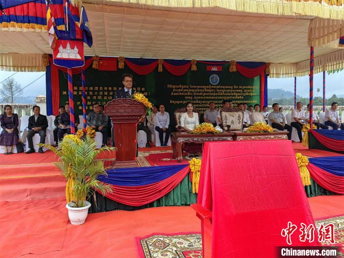 中新社金邊6月19日電 (記者 楊強)當(dāng)?shù)貢r間6月18日,瀾湄合作專項基金“瀾湄國家典型小流域綜合治理示范(三期)”項目俄勒塞村成果移交儀式在柬埔寨國公省莫邦縣舉行。中國駐柬埔寨大使館公使銜參贊趙海燕、柬埔寨國公省省長密杜娜·布通以及當(dāng)?shù)馗鹘缑癖?00余人出席。