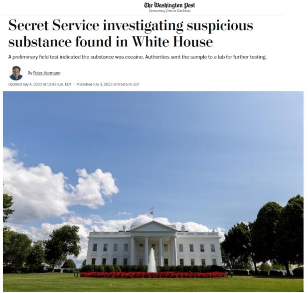 中新網(wǎng)7月4日電 據(jù)美國《華盛頓郵報(bào)》4日報(bào)道,當(dāng)?shù)貢r間2日晚,美國特勤局在白宮內(nèi)發(fā)現(xiàn)了一些可疑白色粉末狀物質(zhì),經(jīng)初步鑒定,其中含有可卡因成分。