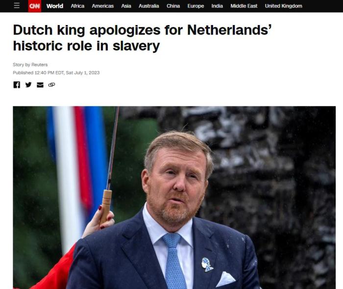 據(jù)美國有線電視新聞網(wǎng)(CNN)報道,荷蘭國王威廉-亞歷山大當天出席了紀念荷蘭廢除奴隸制160周年的儀式,并作出了上述表態(tài)。
