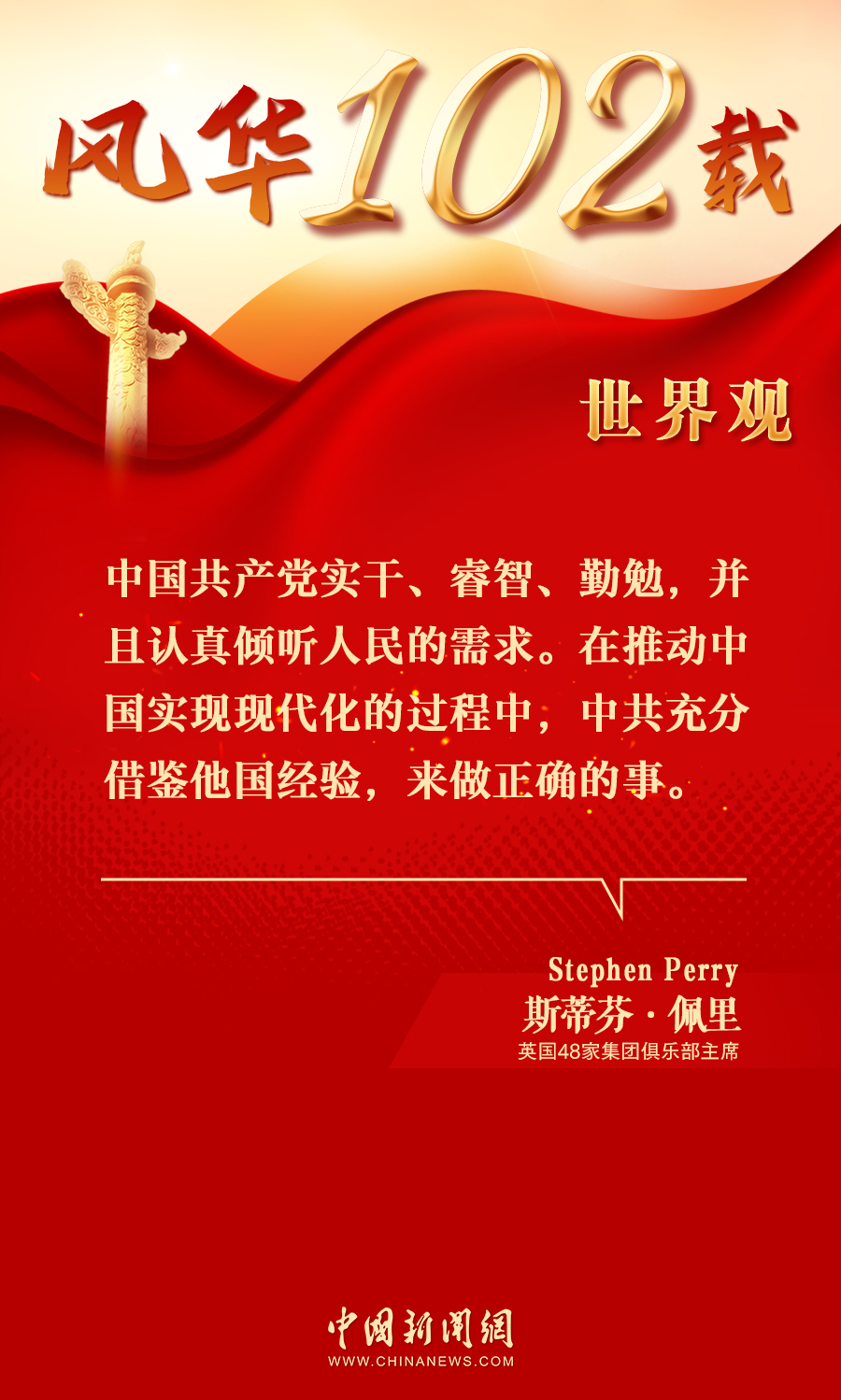 斯蒂芬·佩里:中國(guó)共產(chǎn)黨認(rèn)真傾聽人民需求丨風(fēng)華102載·世界觀