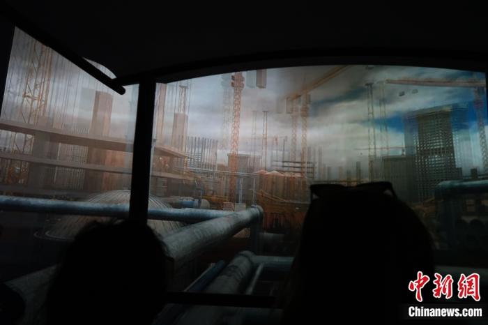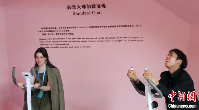 在華留學(xué)生體驗“低碳城市”展廳互動產(chǎn)品。 唐煒妮 攝