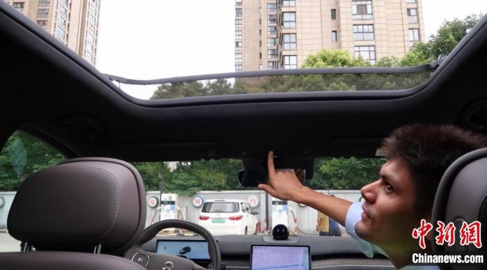 在華留學(xué)生上車體驗新能源汽車站內(nèi)“一鍵換電”。 唐煒妮 攝