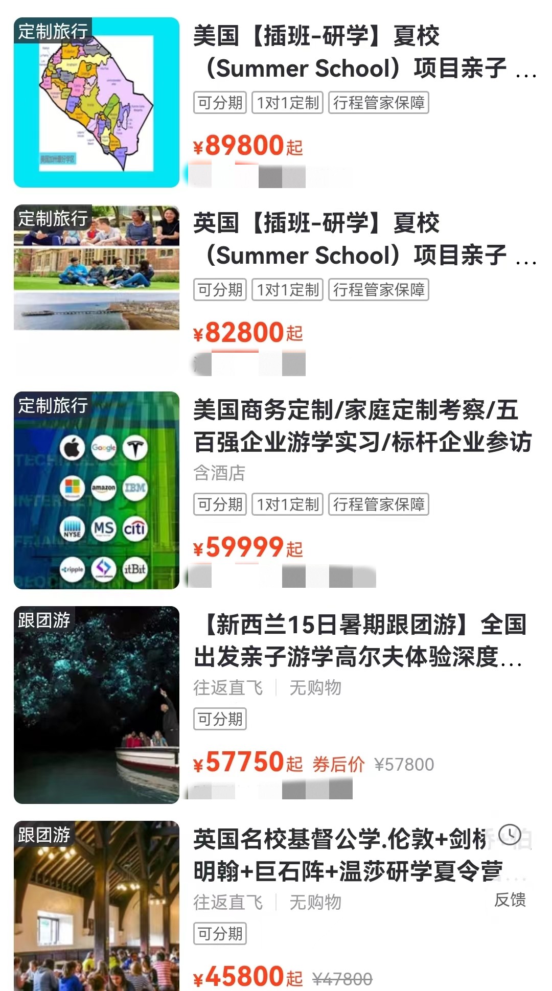 低至100多元的一日研學(xué),高到近9萬(wàn)元的美國(guó)插班研學(xué),打開(kāi)某在線(xiàn)服務(wù)平臺(tái),各種研學(xué)項(xiàng)目應(yīng)有盡有。