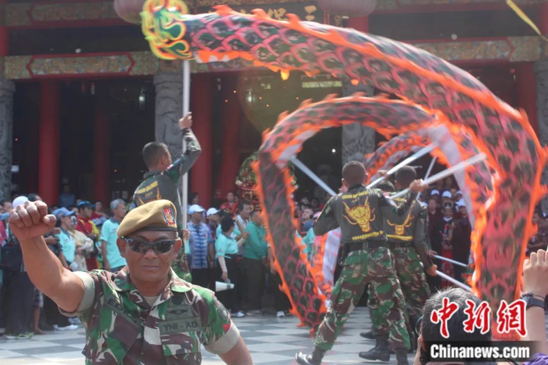 舞龍舞獅作為中國(guó)民間傳統(tǒng)文化,其藝術(shù)形式已成為世界通行的“文化語言”。印尼軍方一些連隊(duì)也喜歡舞龍運(yùn)動(dòng),因?yàn)槲椠埐粌H可培養(yǎng)勇敢和團(tuán)隊(duì)精神,還能讓士兵們步伐靈活、動(dòng)作協(xié)調(diào)一致,同時(shí)又具有很強(qiáng)的娛樂性。去年10月,印尼龍獅運(yùn)動(dòng)聯(lián)合總會(huì)在日惹舉辦了印尼全國(guó)龍獅大賽,印尼軍方派出多支代表隊(duì)參賽。今年3月,北蘇門答臘省龍獅分會(huì)在棉蘭舉辦國(guó)際舞獅大賽,當(dāng)?shù)剀姺揭才沙鑫椠堦?duì)到場(chǎng)表演。